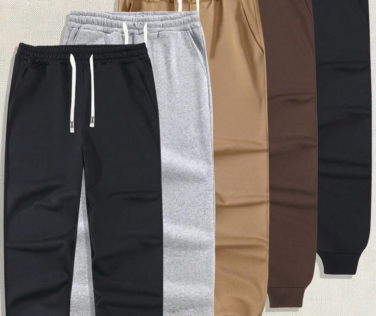 Athleisure-inspired track pants made from fleece and performance fabrics, blending comfort with style for everyday wear.